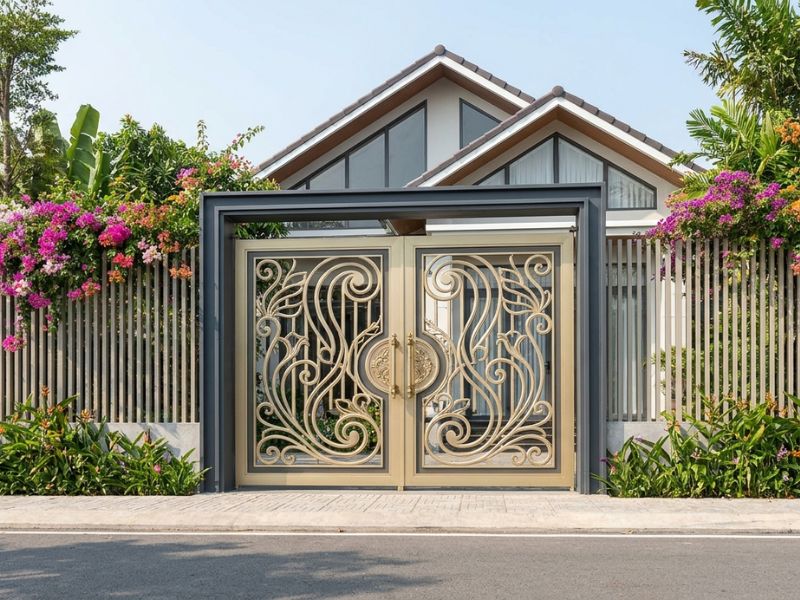 Cổng sắt là lựa chọn phổ biến nhờ tính bền bỉ và dễ dàng tạo hình. Với công nghệ sơn tĩnh điện, cổng sắt có thể chống lại gỉ sét và thời tiết khắc nghiệt, giữ được vẻ đẹp lâu dài.